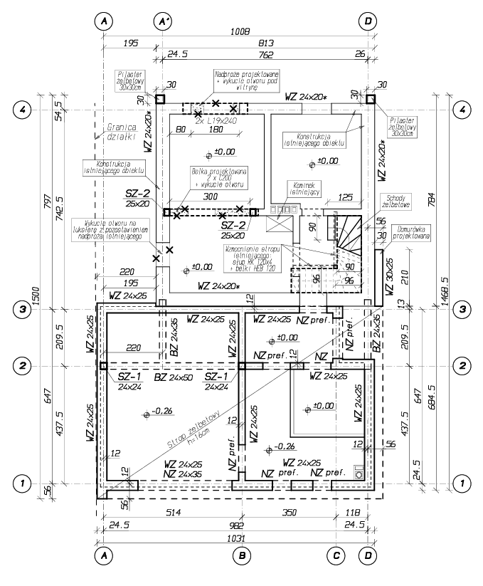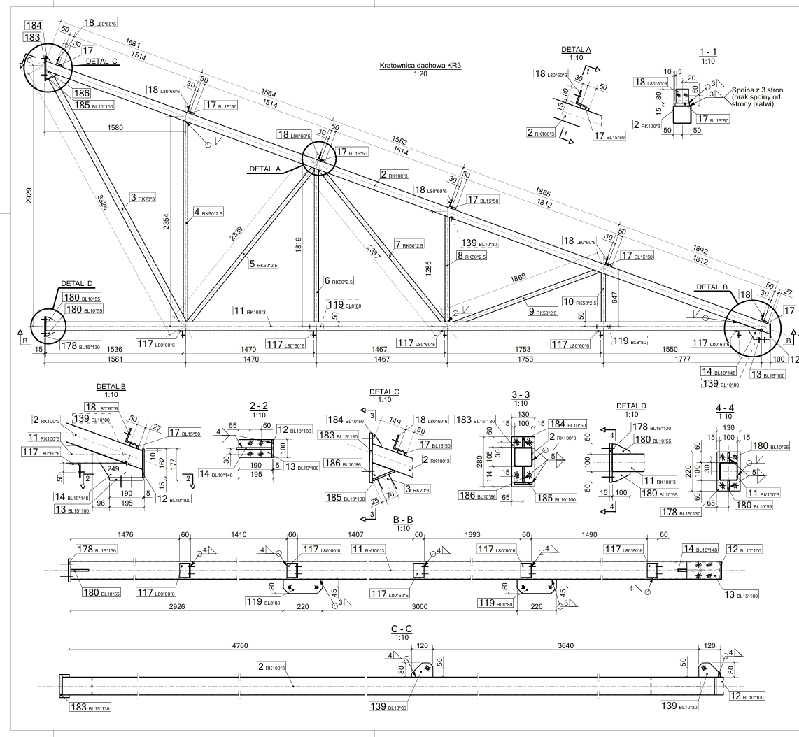 Kompleksowe opracowanie dokumentacji konstrukcyjnej dla hal, biurowców i innych obiektów.